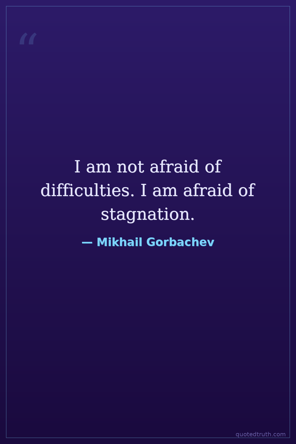 I am not afraid of difficulties. I am afraid of stagnation.