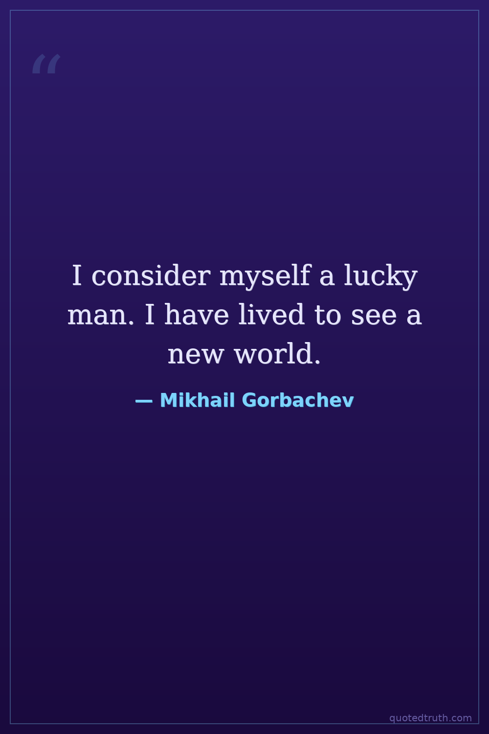 I consider myself a lucky man. I have lived to see a new world.
