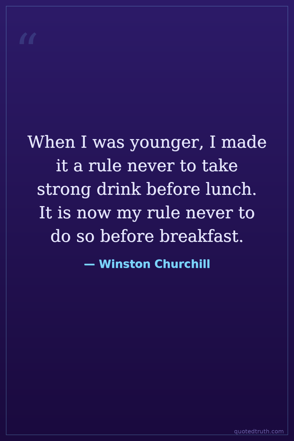 When I was younger, I made it a rule never to take strong drink before lunch. It is now my rule never to do so before breakfast.