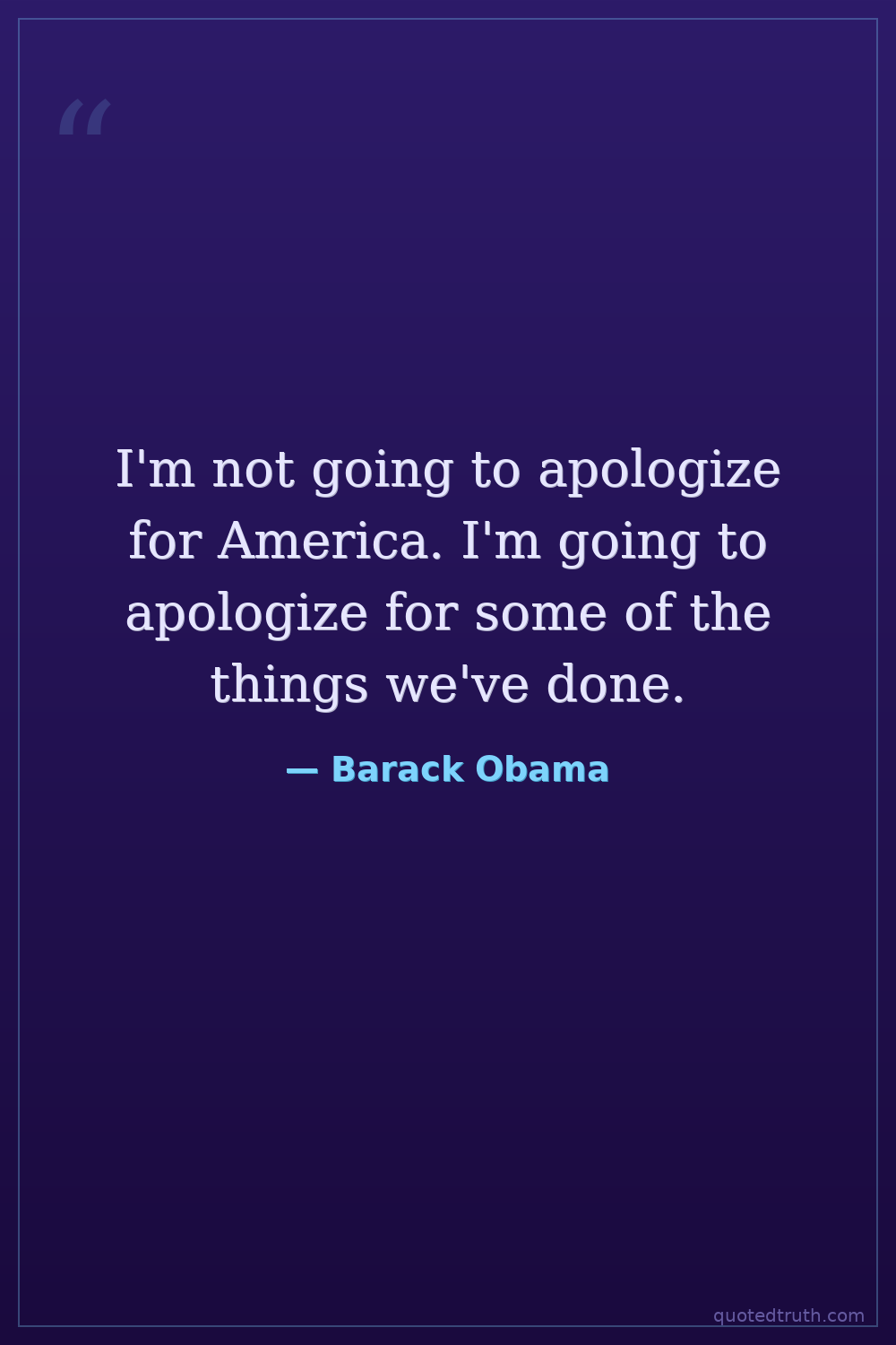 I'm not going to apologize for America. I'm going to apologize for some of the things we've done.
