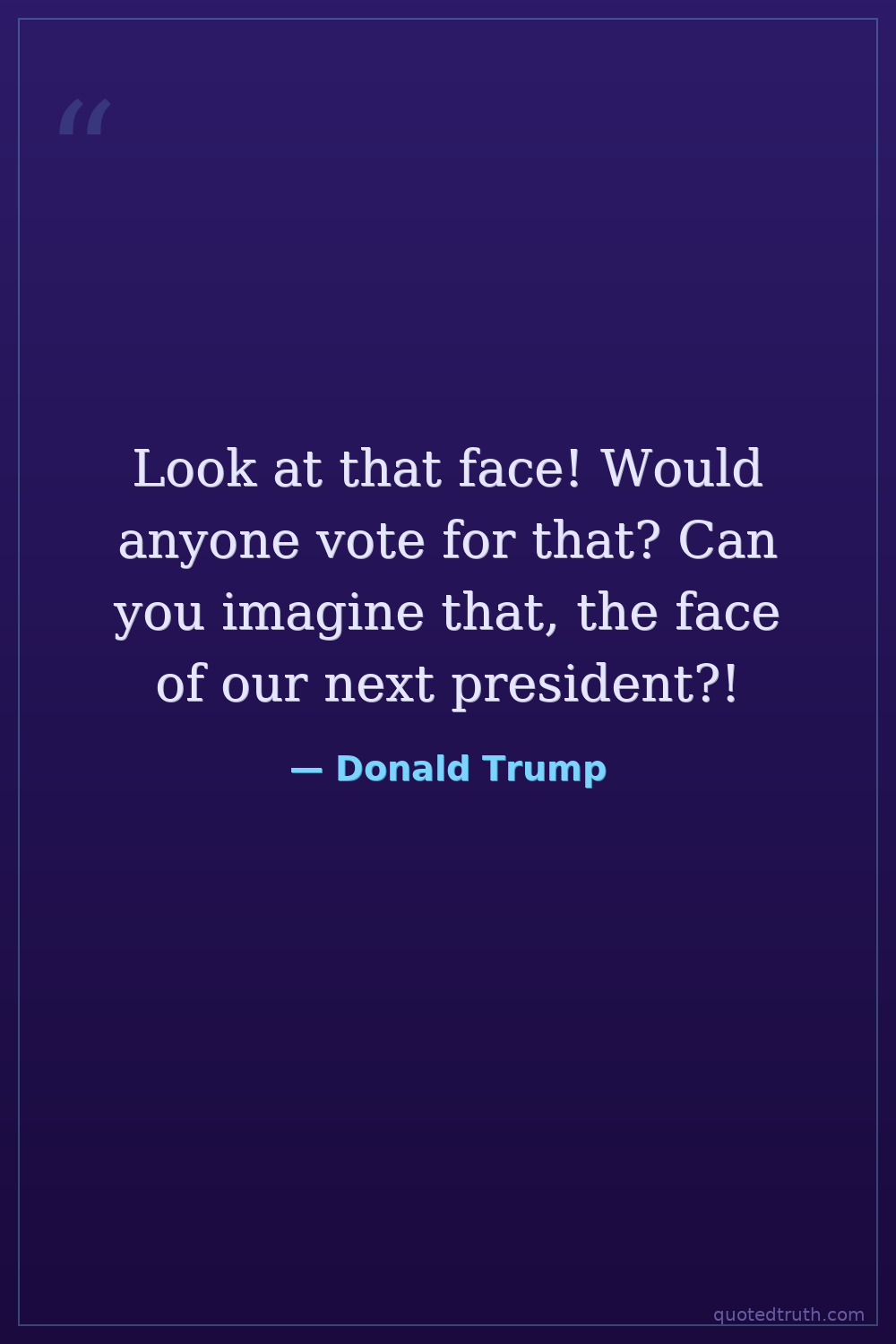 Look at that face! Would anyone vote for that? Can you imagine that, the face of our next president?!
