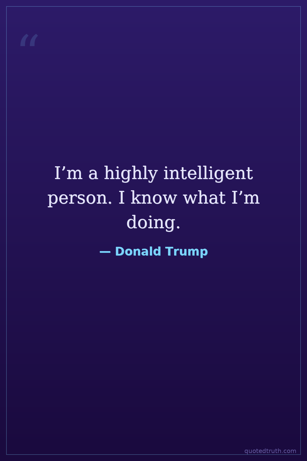 I’m a highly intelligent person. I know what I’m doing.