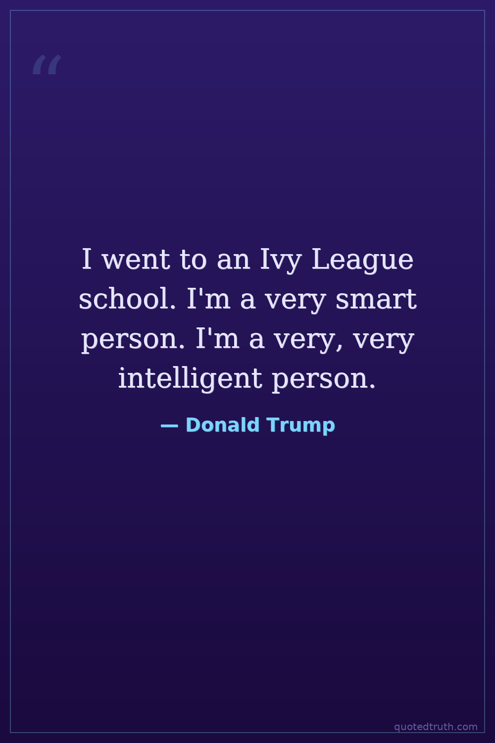 I went to an Ivy League school. I'm a very smart person. I'm a very, very intelligent person.