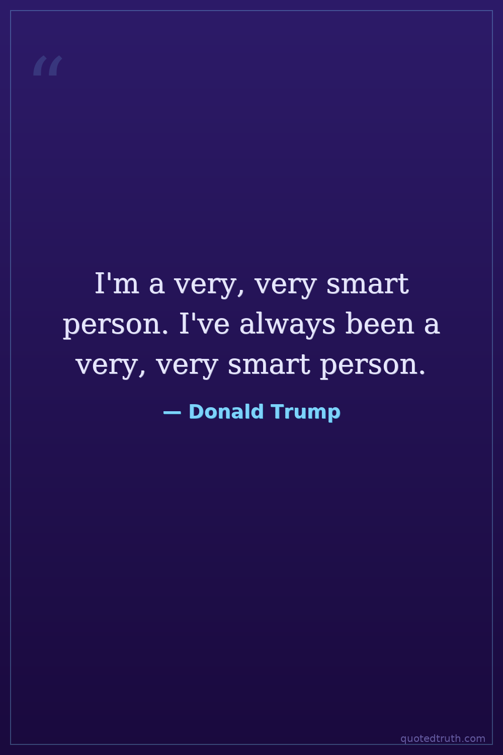 Humorous"I went to an Ivy League school. I'm a very smart person. I'm a very, very intelligent person."
