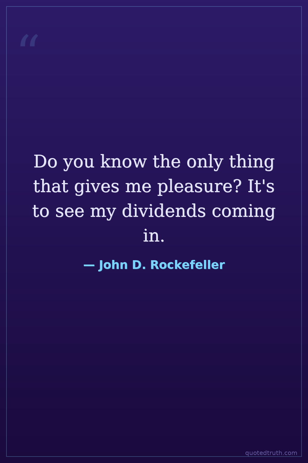 Do you know the only thing that gives me pleasure? It's to see my dividends coming in.
