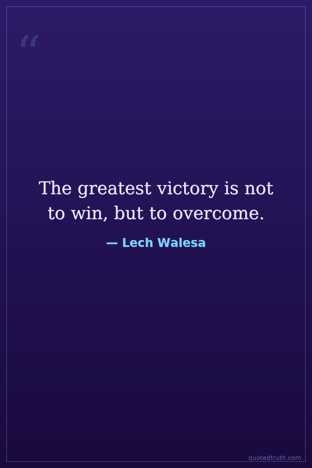 The greatest victory is not to win, but to overcome.