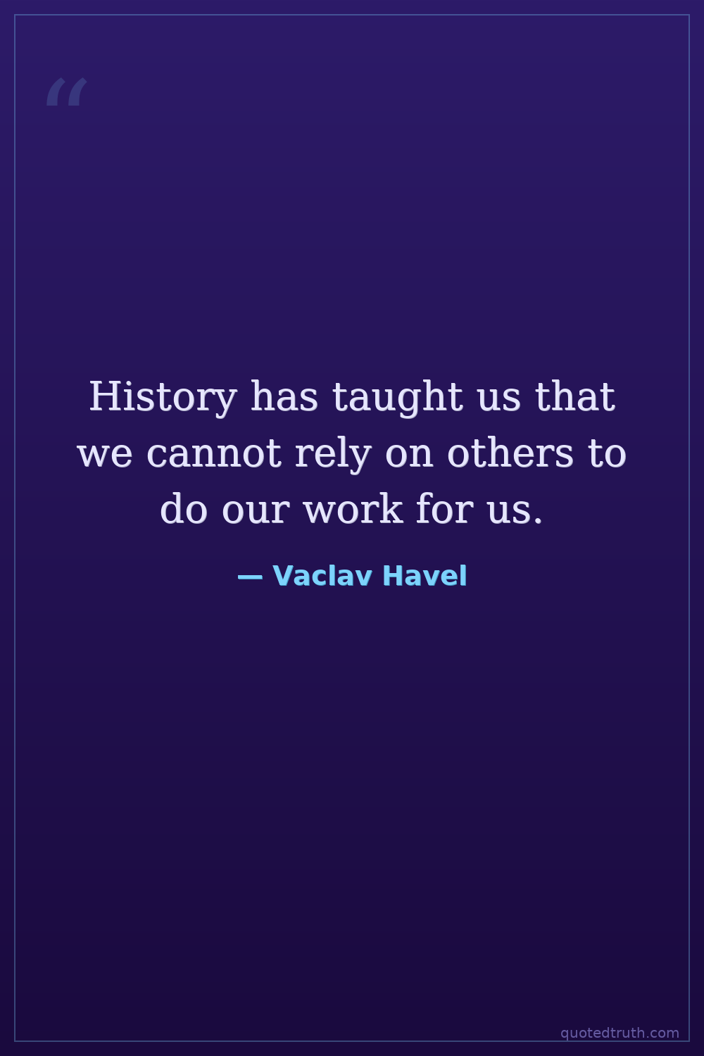History has taught us that we cannot rely on others to do our work for us.