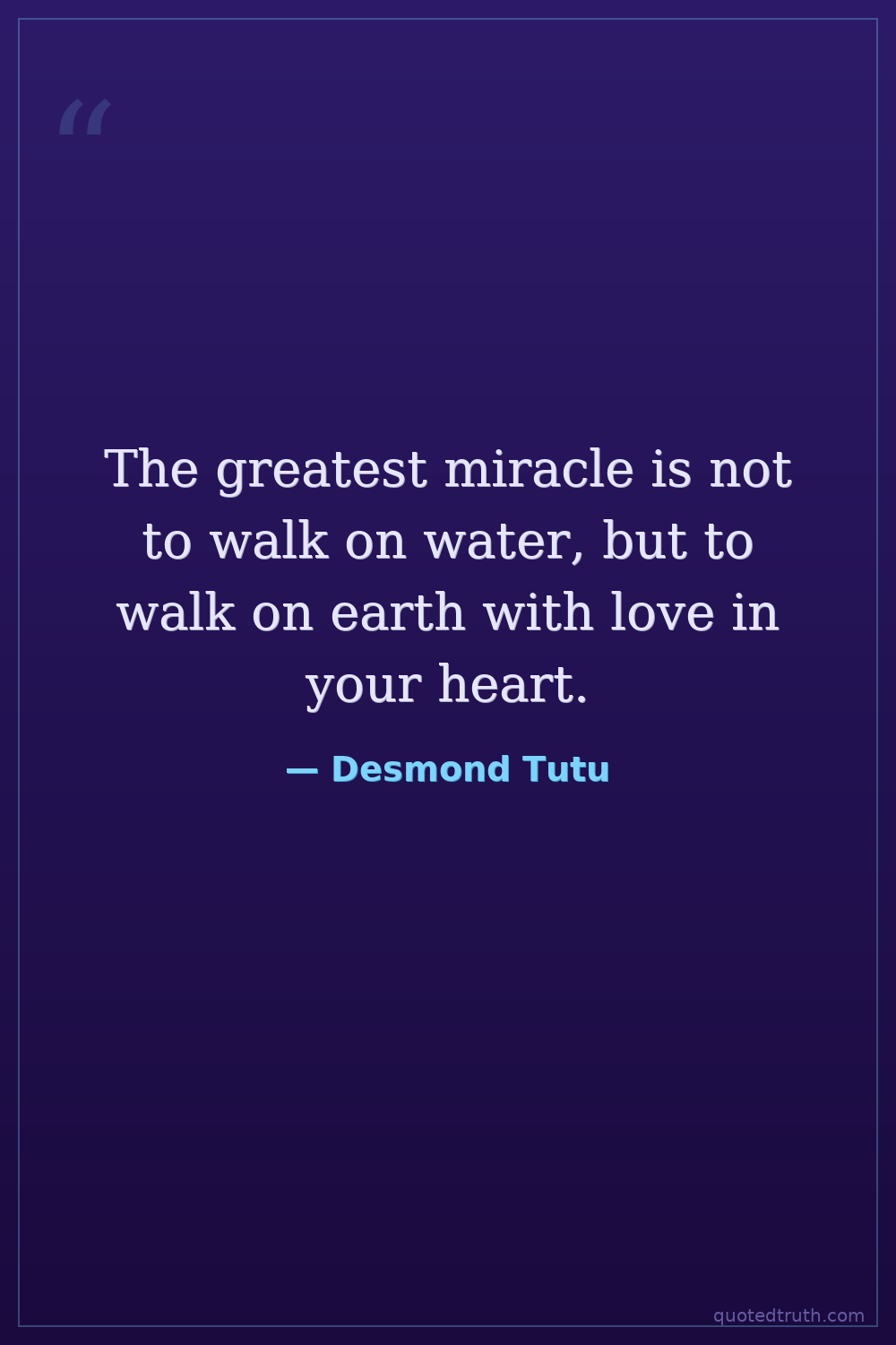 The greatest miracle is not to walk on water, but to walk on earth with love in your heart.