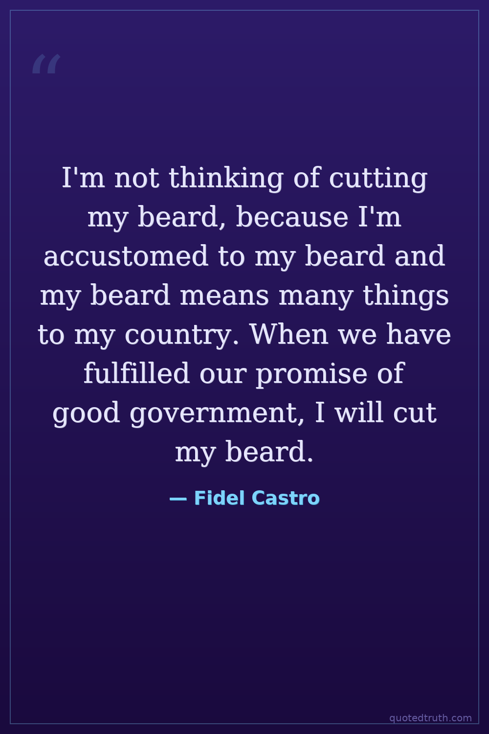 I'm not thinking of cutting my beard, because I'm accustomed to my beard and my beard means many things to my country. When we have fulfilled our promise of good government, I will cut my beard.