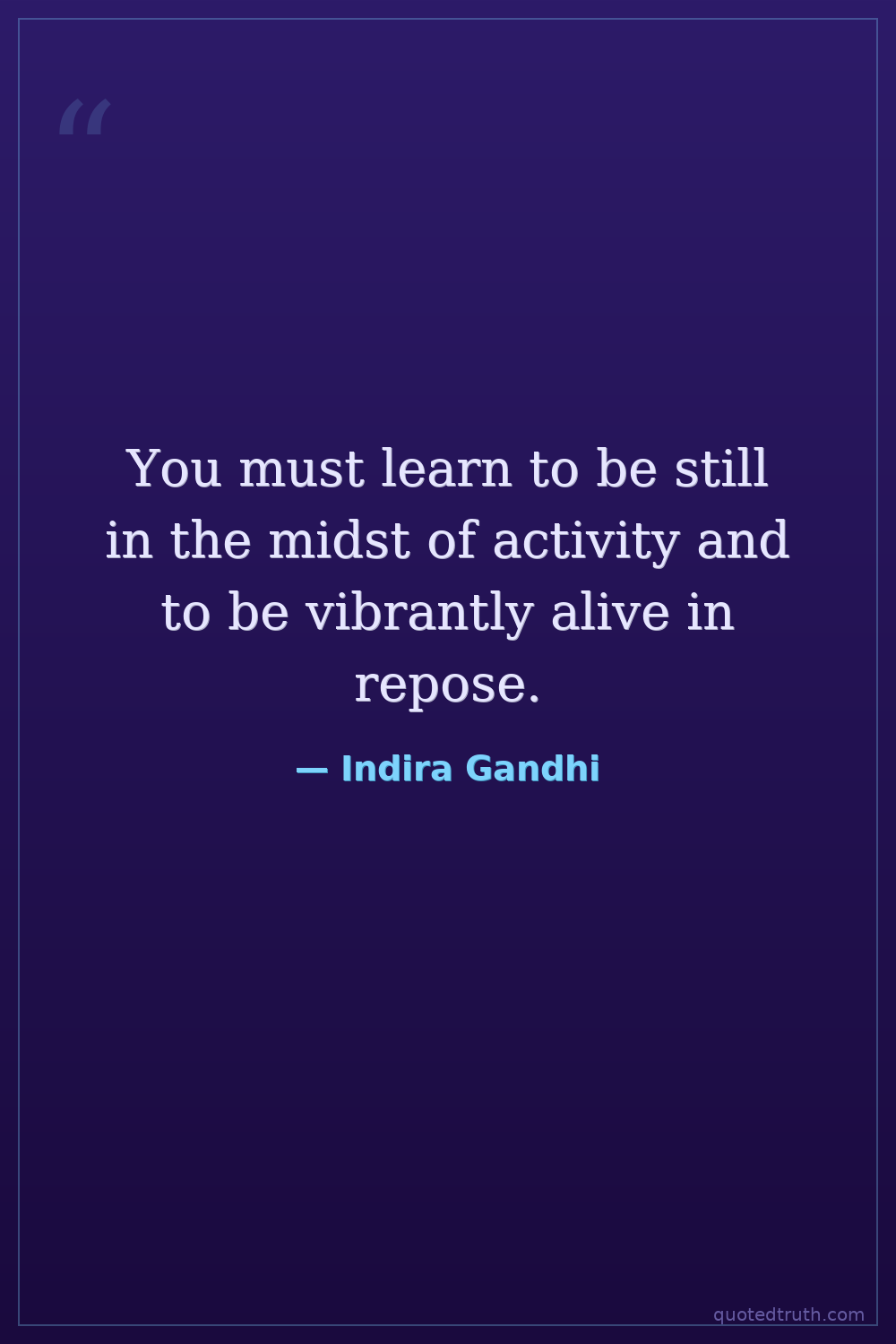 You must learn to be still in the midst of activity and to be vibrantly alive in repose.