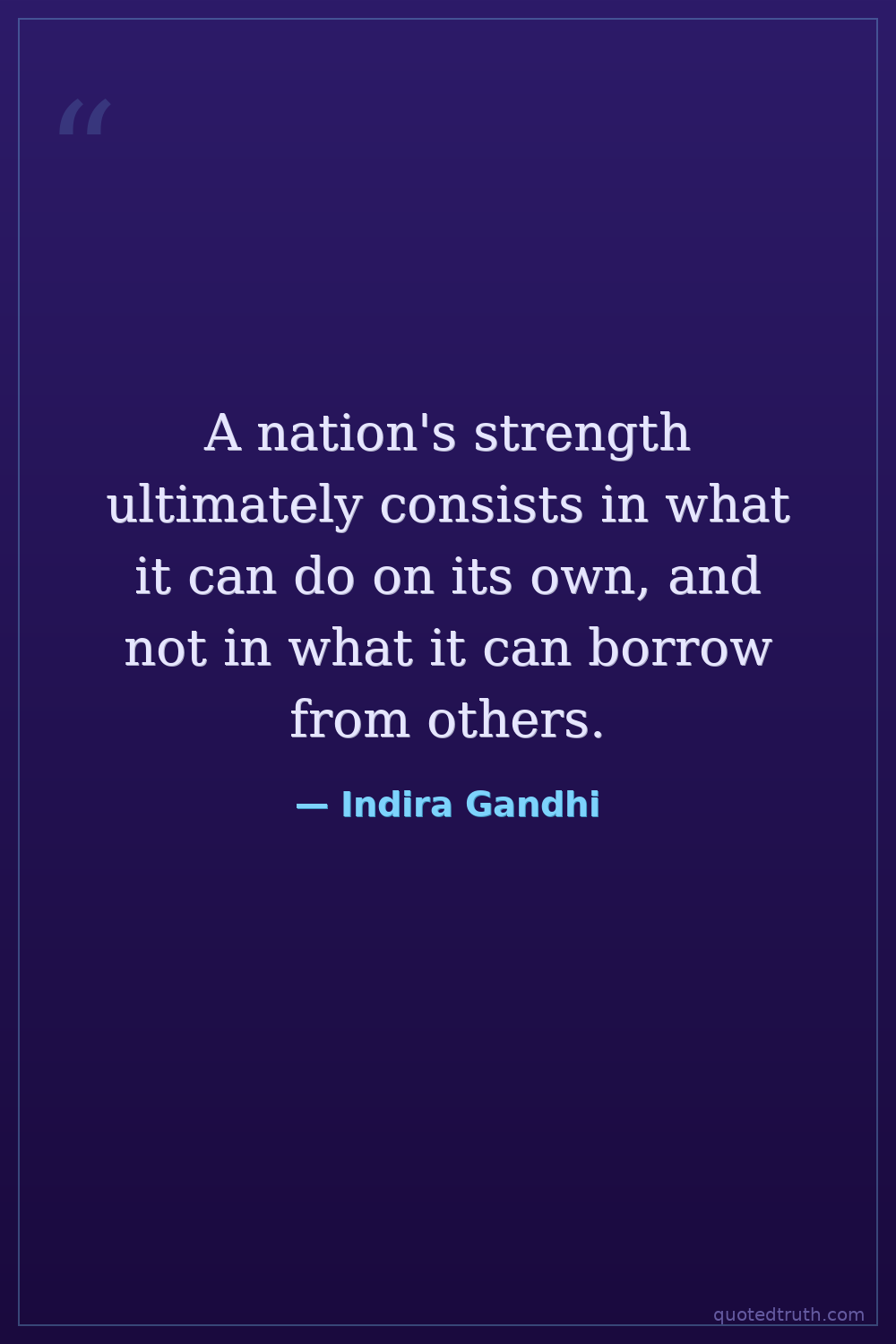 A nation's strength ultimately consists in what it can do on its own, and not in what it can borrow from others.