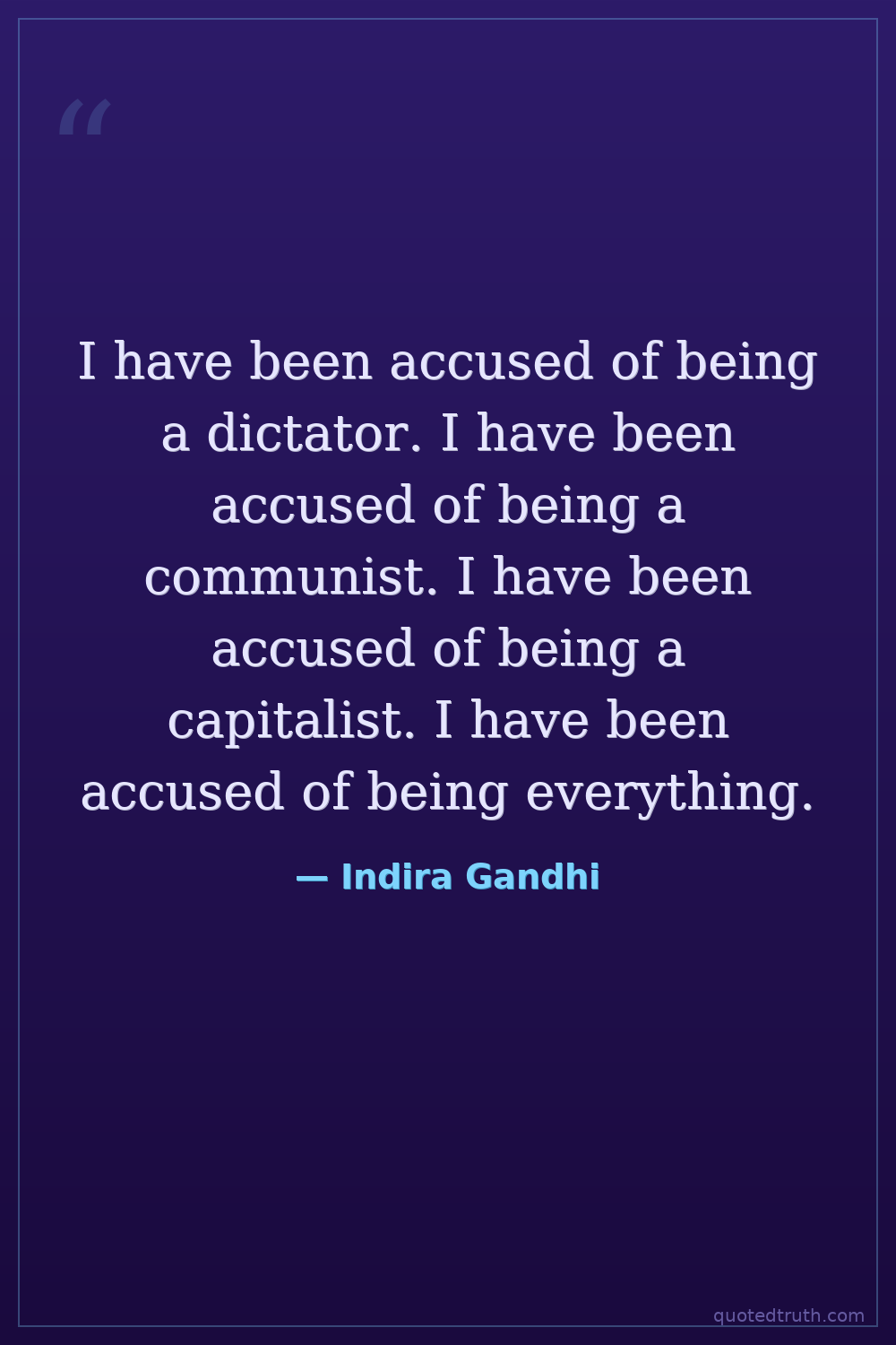 I have been accused of being a dictator. I have been accused of being a communist. I have been accused of being a capitalist. I have been accused of being everything.