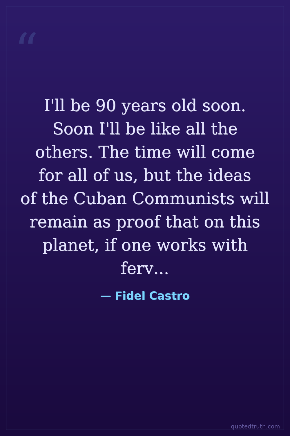 I'll be 90 years old soon. Soon I'll be like all the others. The time will come for all of us, but the ideas of the Cuban Communists will remain as proof that on this planet, if one works with fervor and dignity, they can produce the material and cultural goods that human beings need and that need to be fought for without ever giving up.