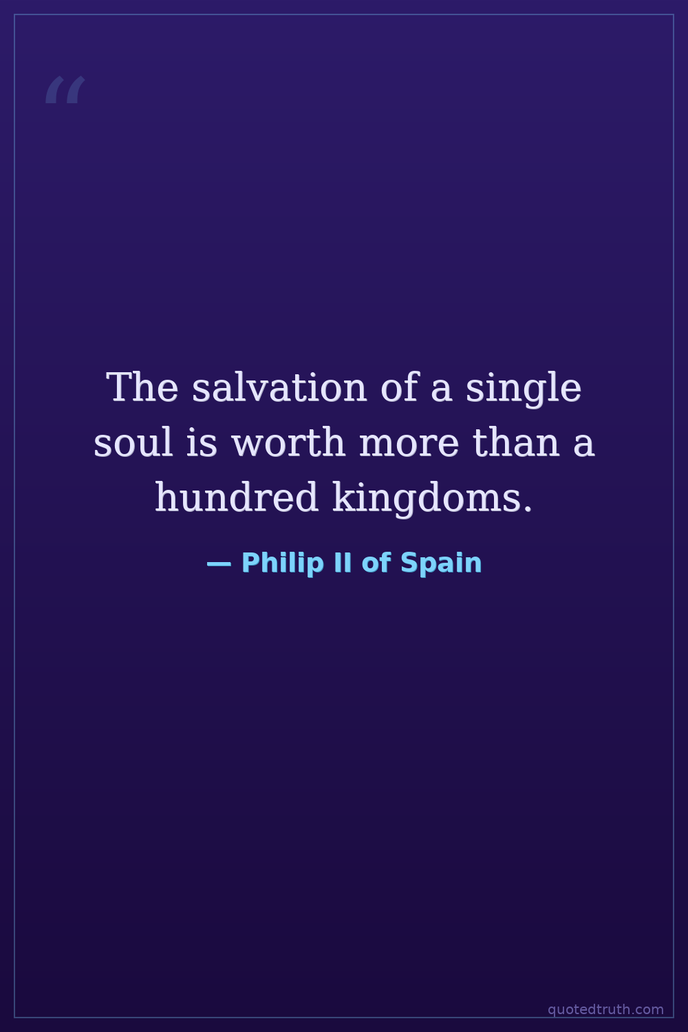 The salvation of a single soul is worth more than a hundred kingdoms.
