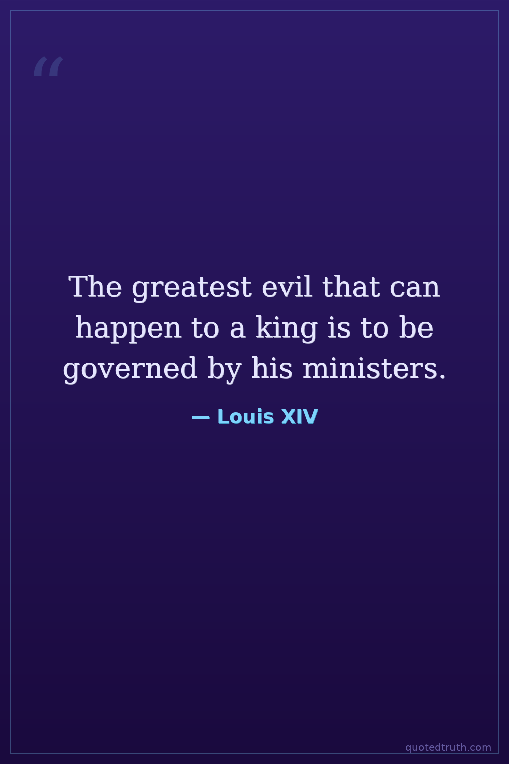 The greatest evil that can happen to a king is to be governed by his ministers.