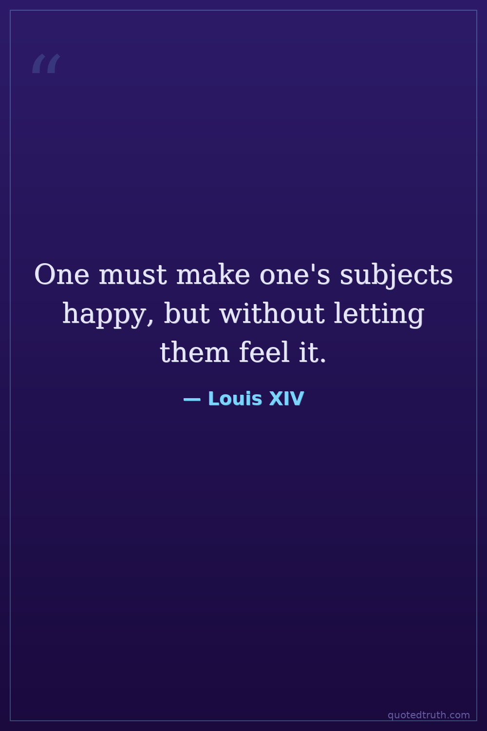 One must make one's subjects happy, but without letting them feel it.