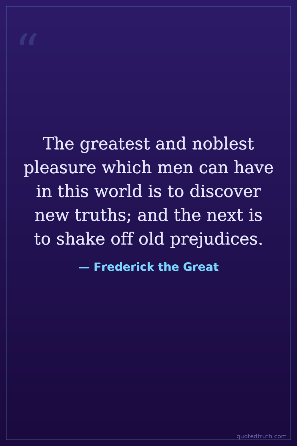 The greatest and noblest pleasure which men can have in this world is to discover new truths; and the next is to shake off old prejudices.