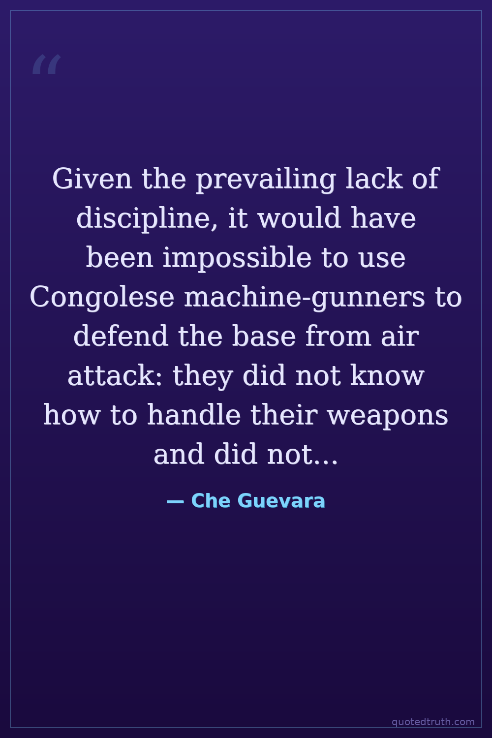Given the prevailing lack of discipline, it would have been impossible to use Congolese machine-gunners to defend the base from air attack: they did not know how to handle their weapons and did not want to learn.