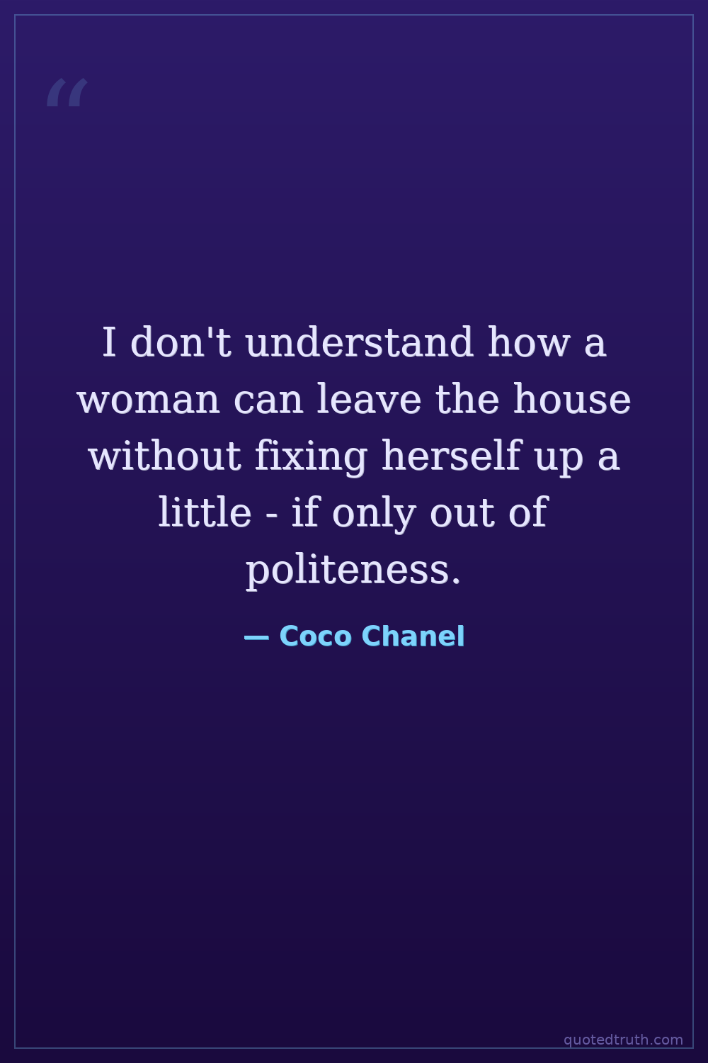 I don't understand how a woman can leave the house without fixing herself up a little - if only out of politeness.