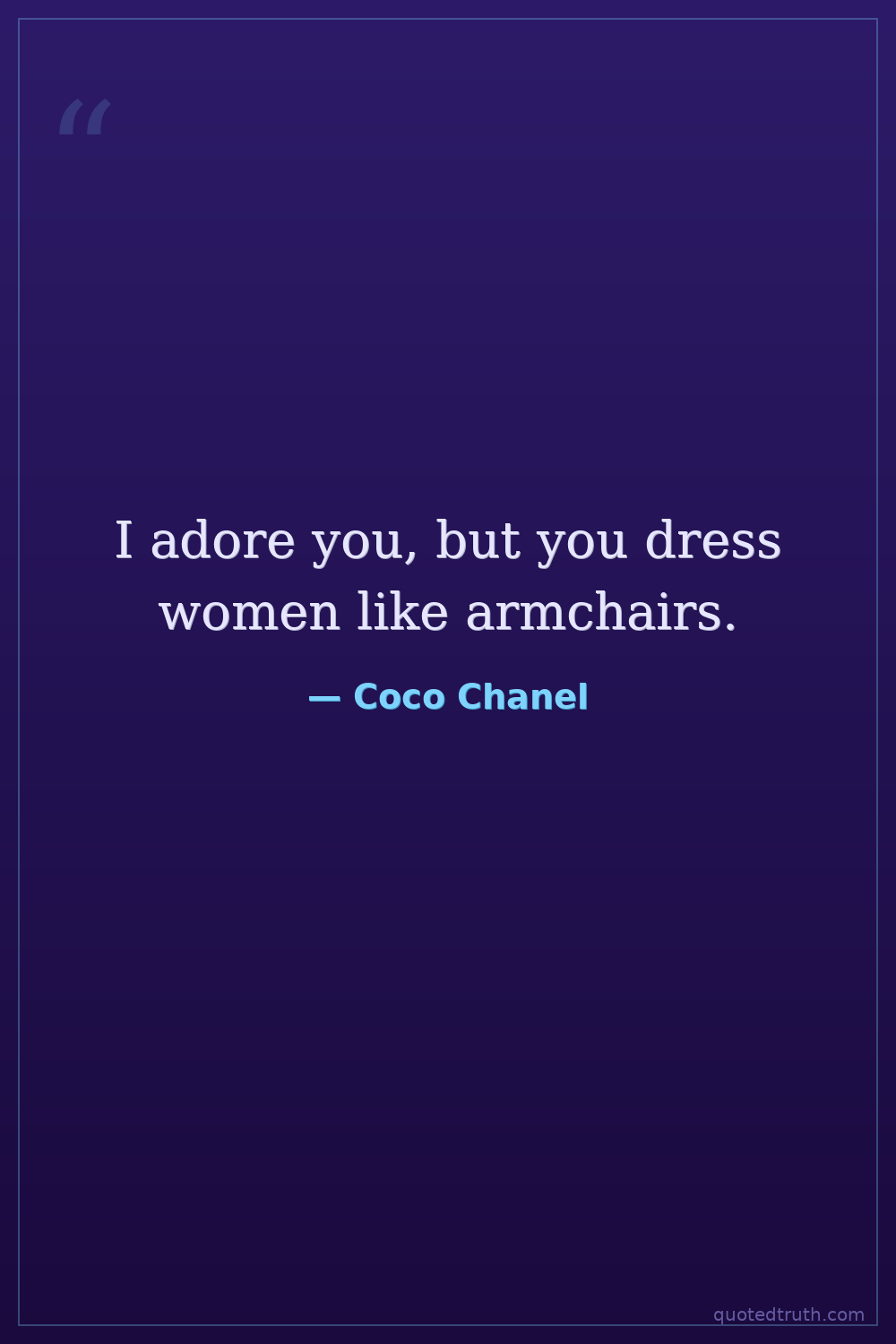 I adore you, but you dress women like armchairs.