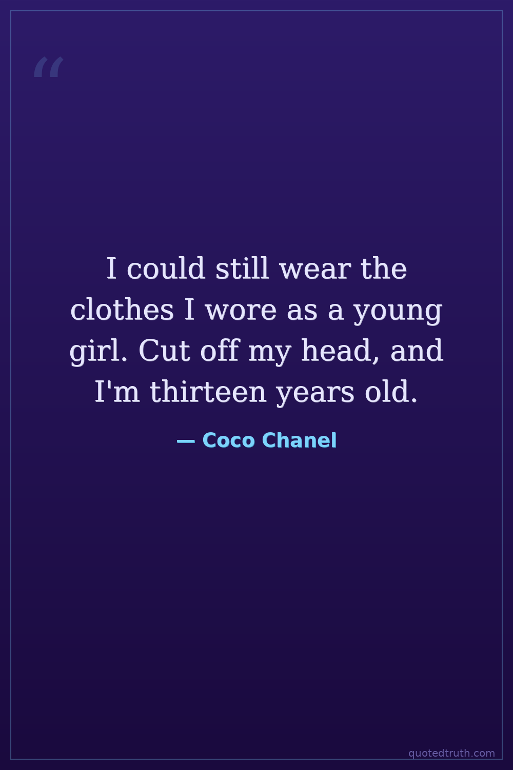 I could still wear the clothes I wore as a young girl. Cut off my head, and I'm thirteen years old.
