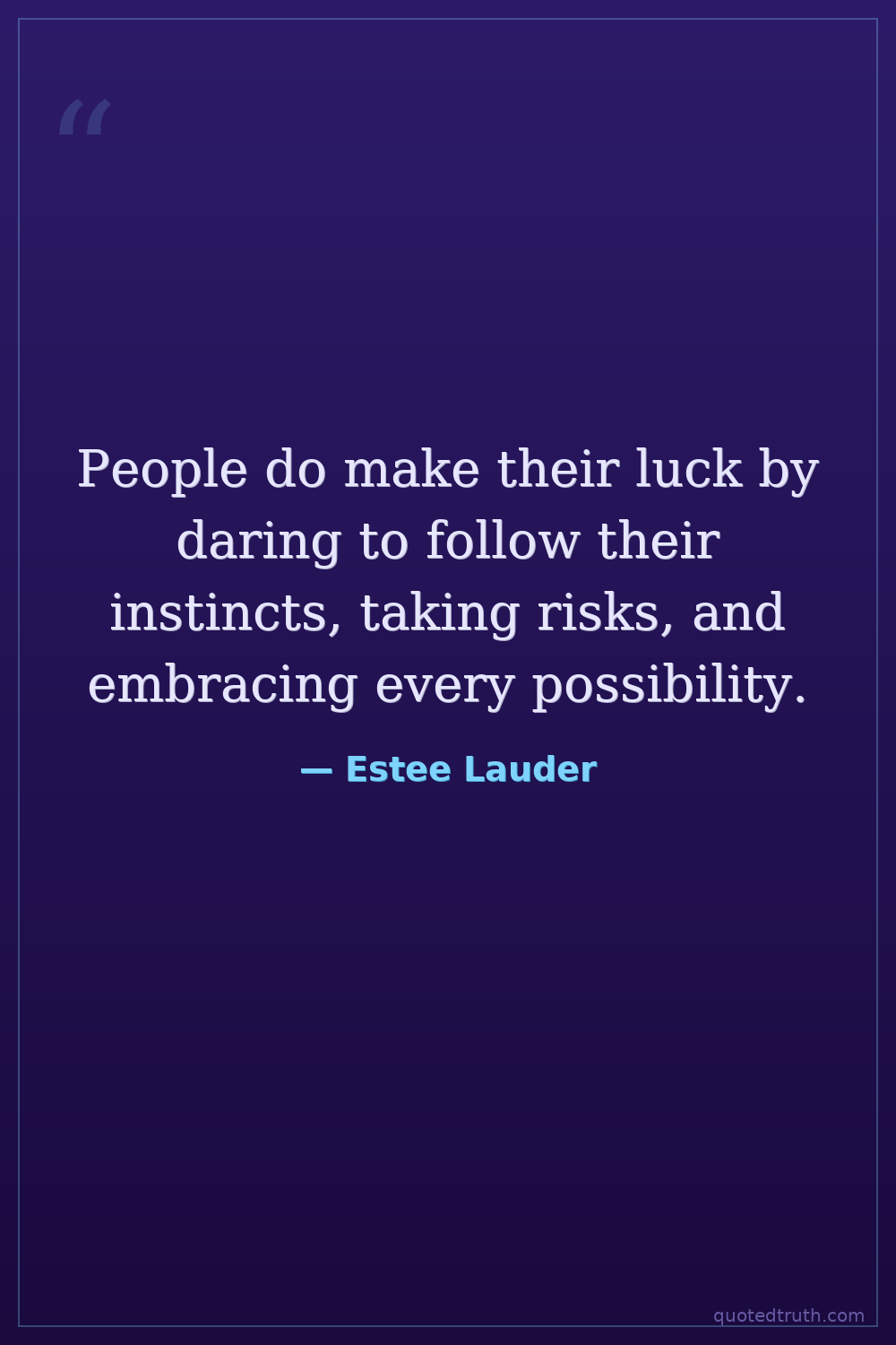 People do make their luck by daring to follow their instincts, taking risks, and embracing every possibility.