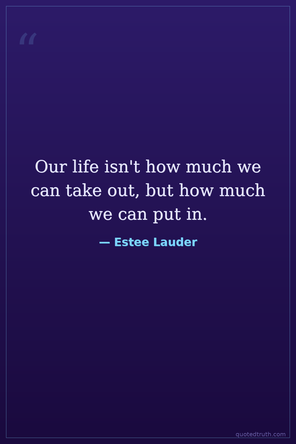 Our life isn't how much we can take out, but how much we can put in.