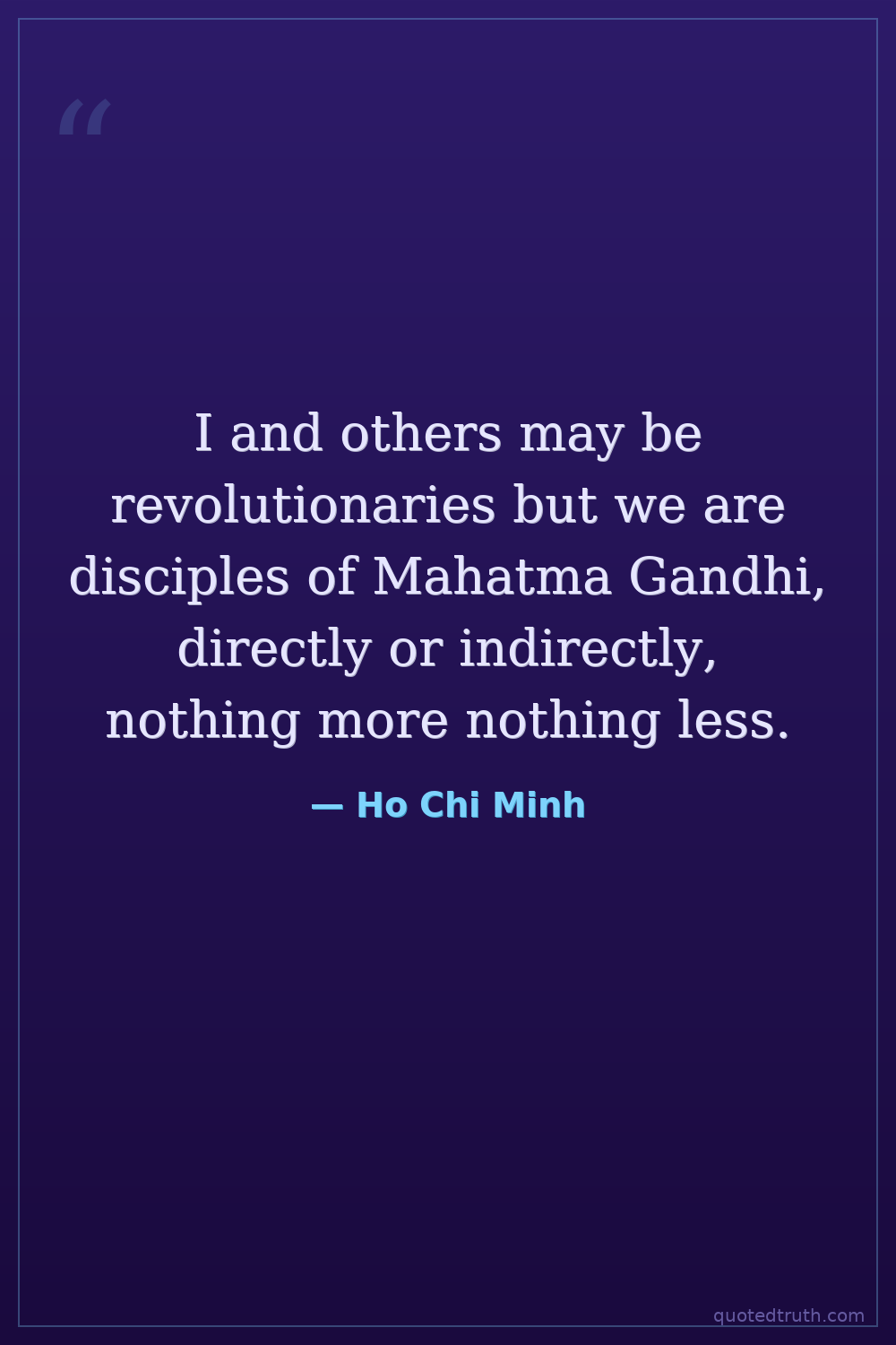 I and others may be revolutionaries but we are disciples of Mahatma Gandhi, directly or indirectly, nothing more nothing less.