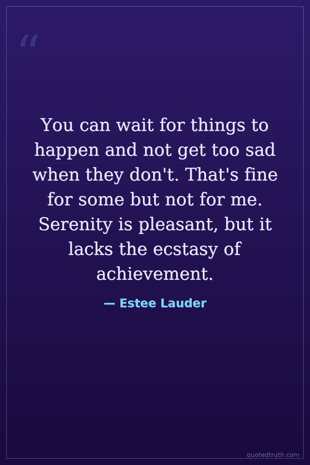 You can wait for things to happen and not get too sad when they don't. That's fine for some but not for me. Serenity is pleasant, but it lacks the ecstasy of achievement.