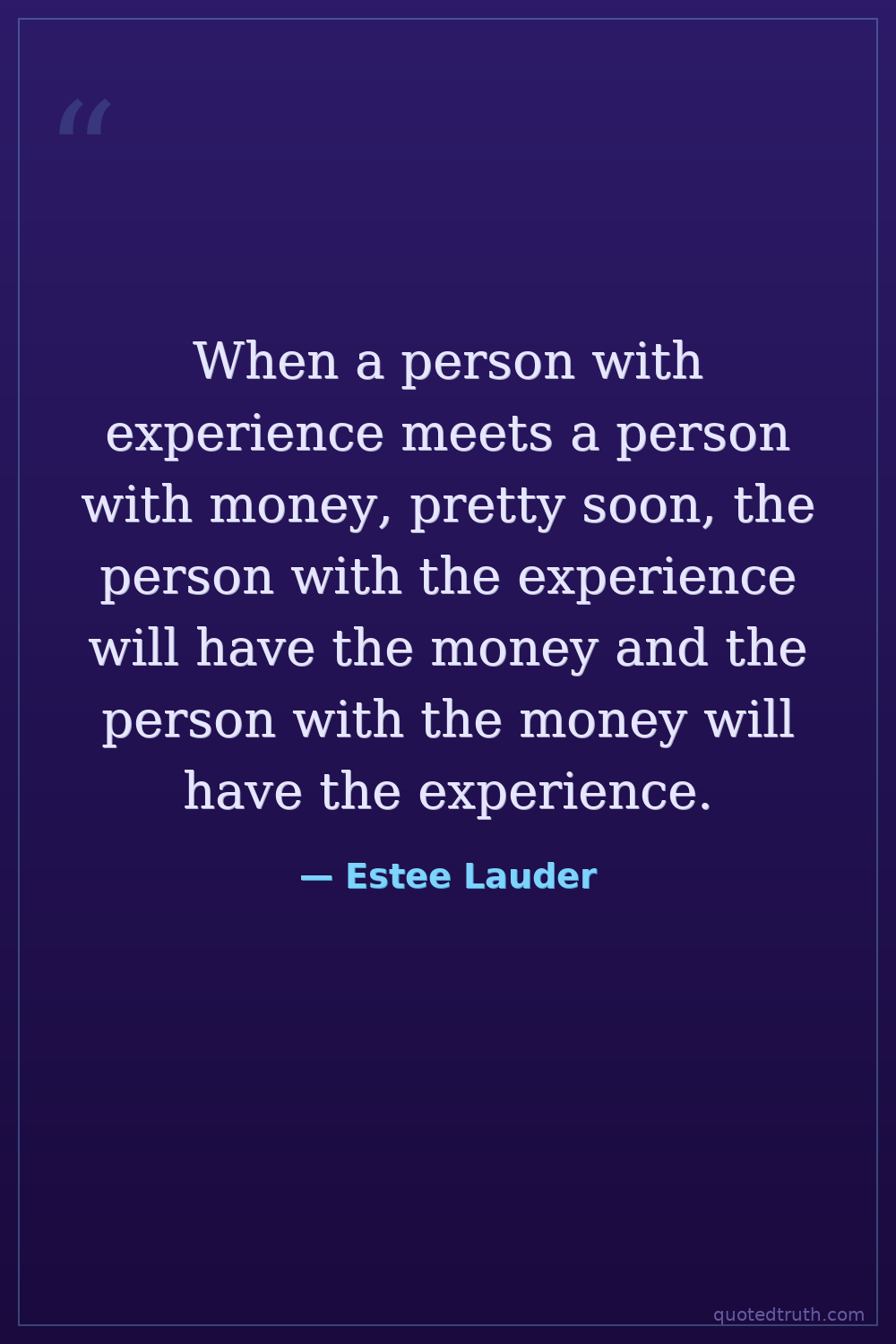 When a person with experience meets a person with money, pretty soon, the person with the experience will have the money and the person with the money will have the experience.
