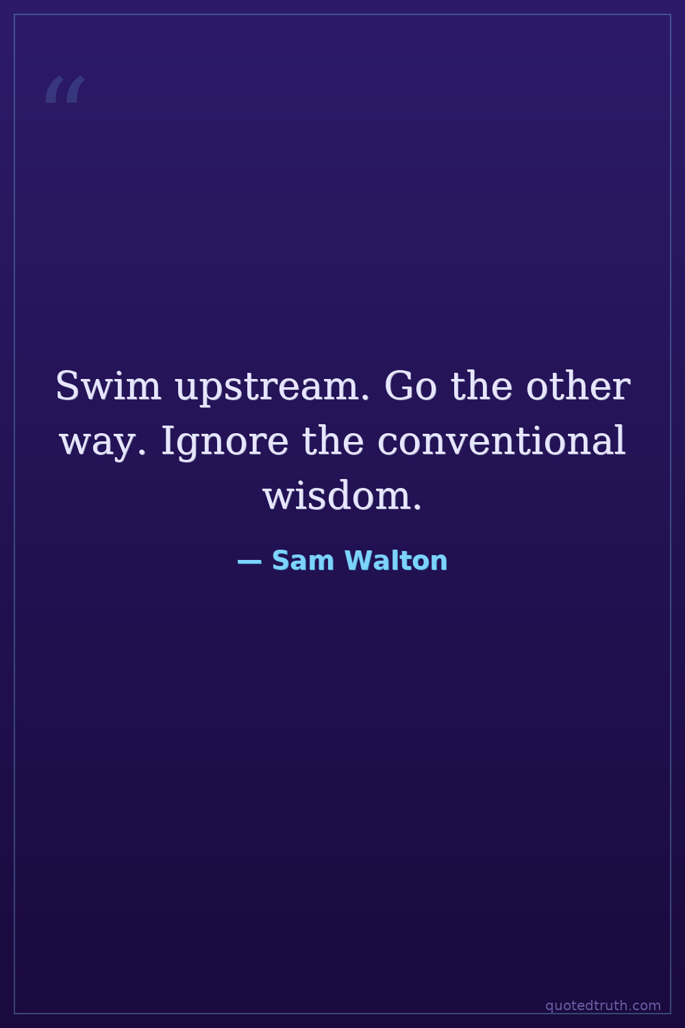 Swim upstream. Go the other way. Ignore the conventional wisdom.