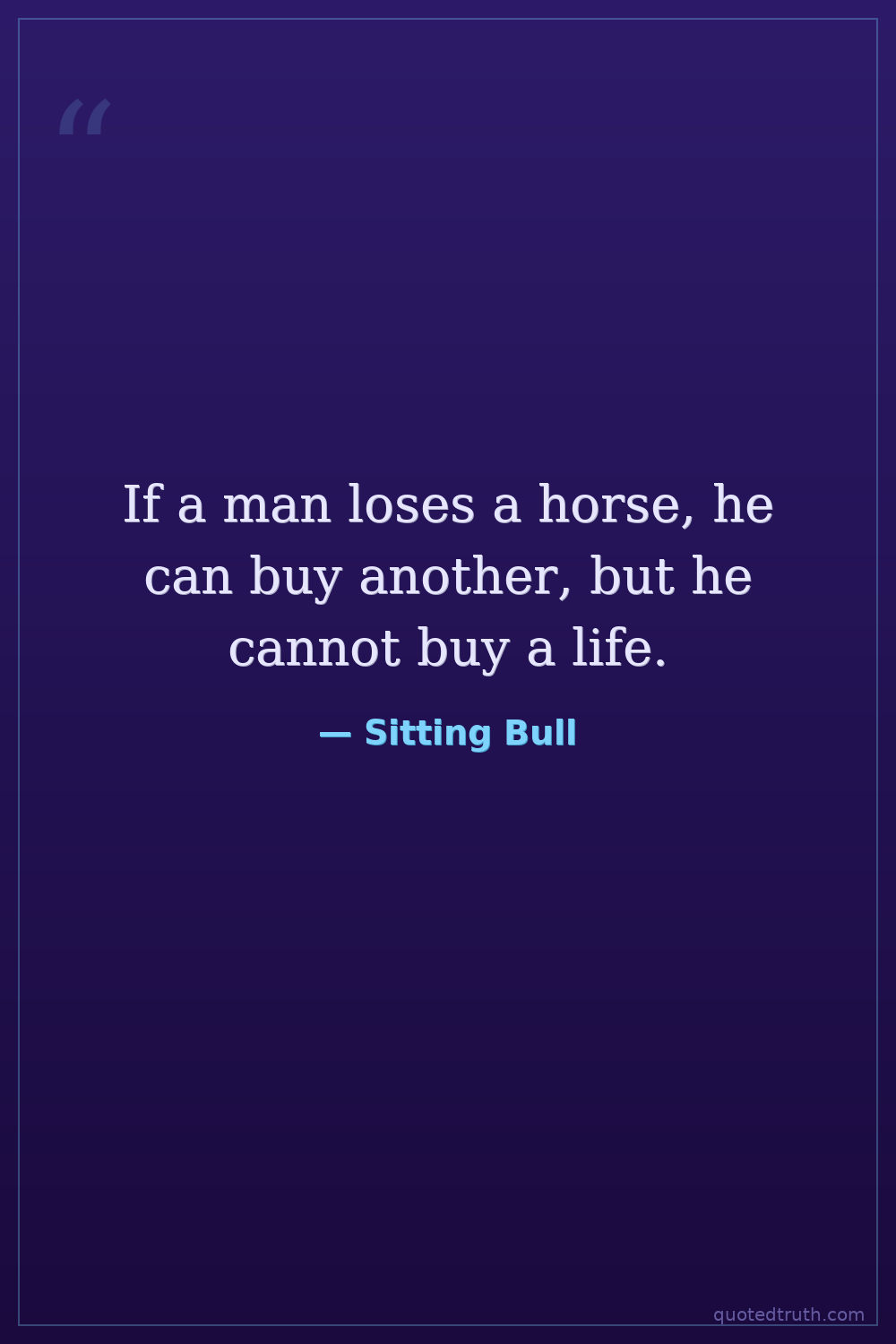 If a man loses a horse, he can buy another, but he cannot buy a life.