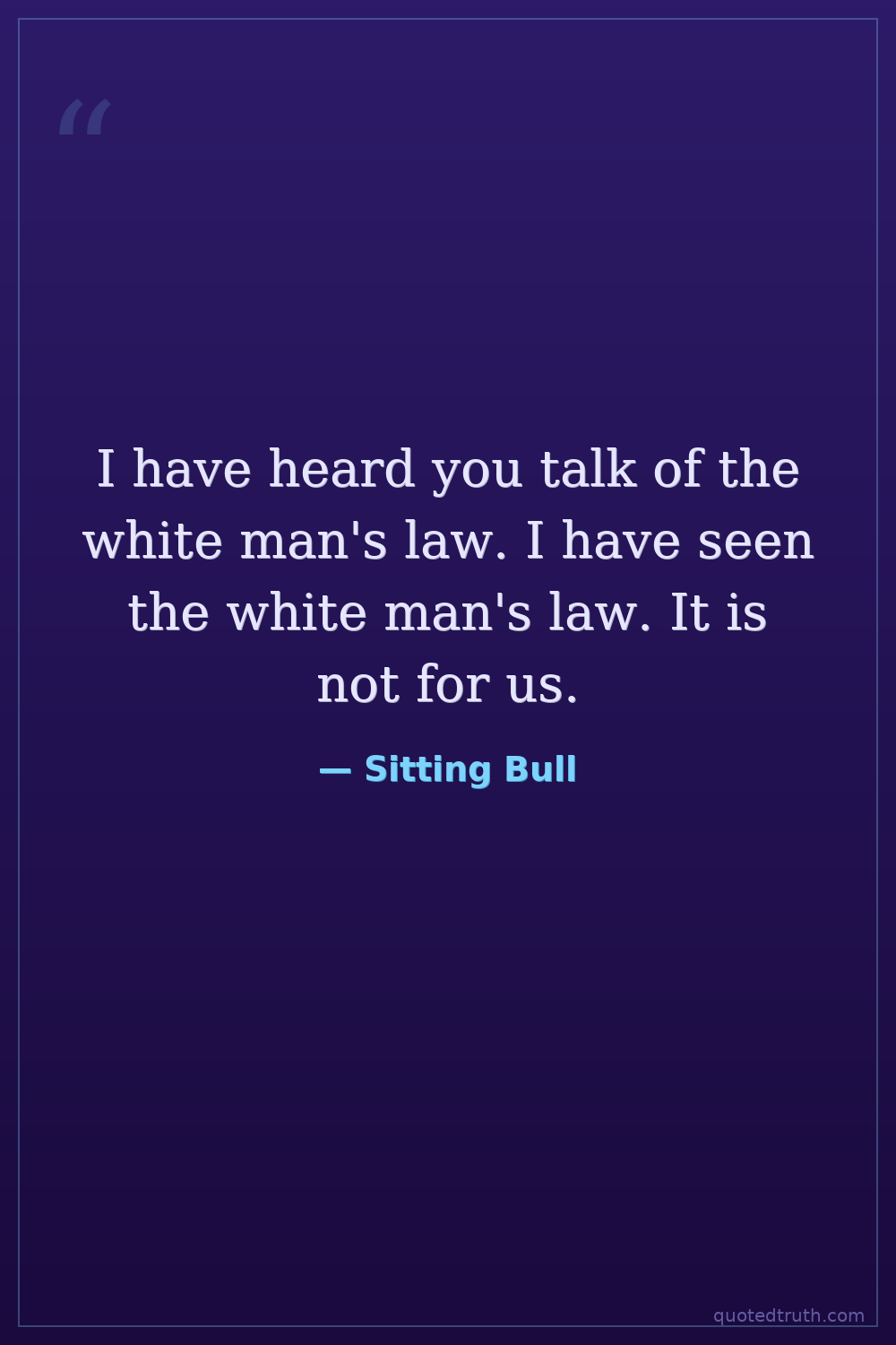 I have heard you talk of the white man's law. I have seen the white man's law. It is not for us.