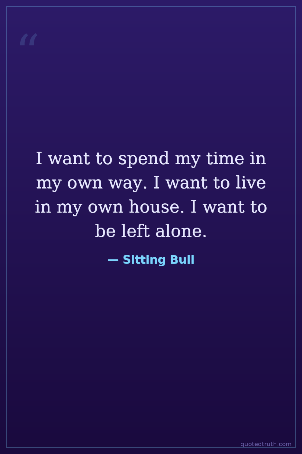 I want to spend my time in my own way. I want to live in my own house. I want to be left alone.