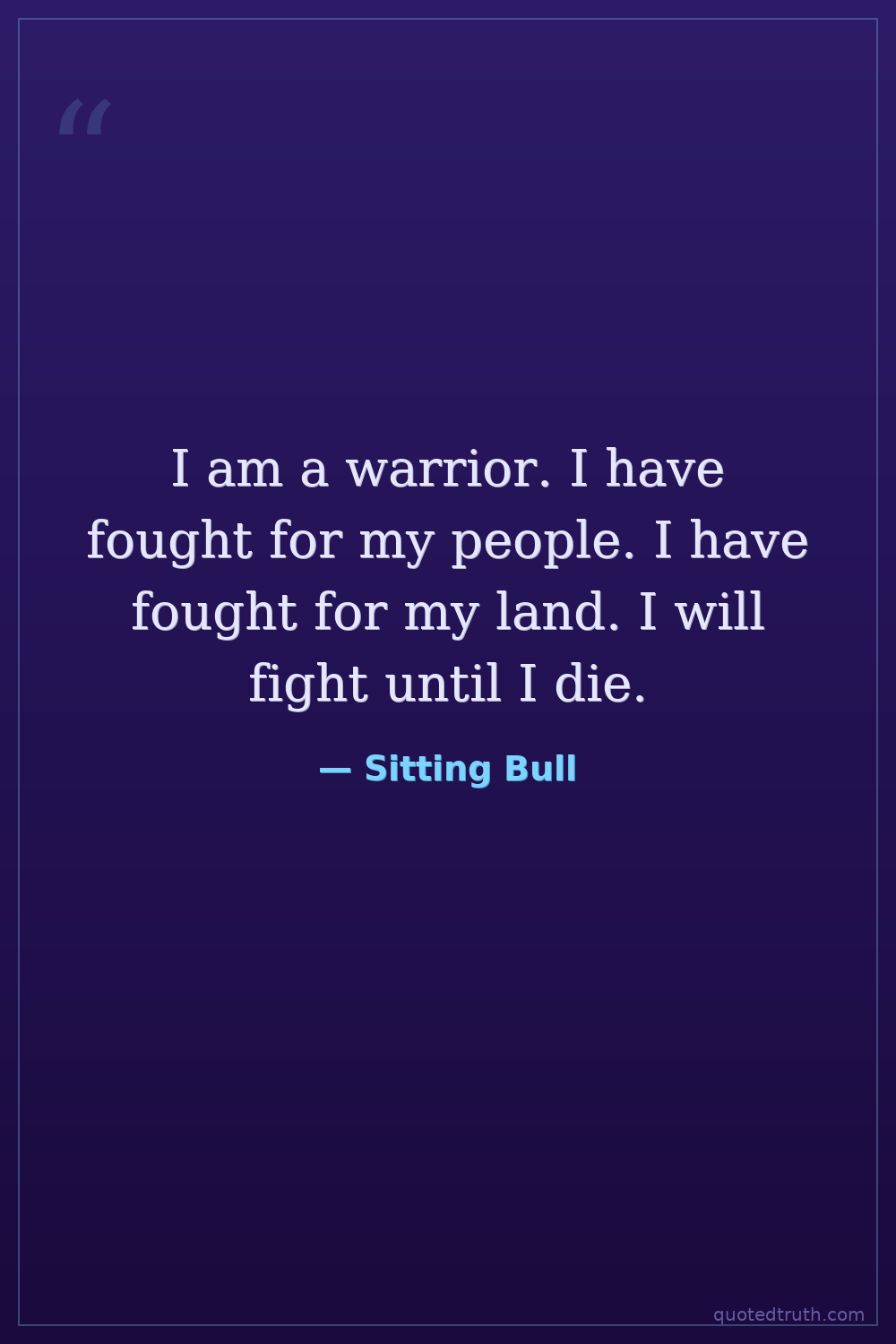 I am a warrior. I have fought for my people. I have fought for my land. I will fight until I die.