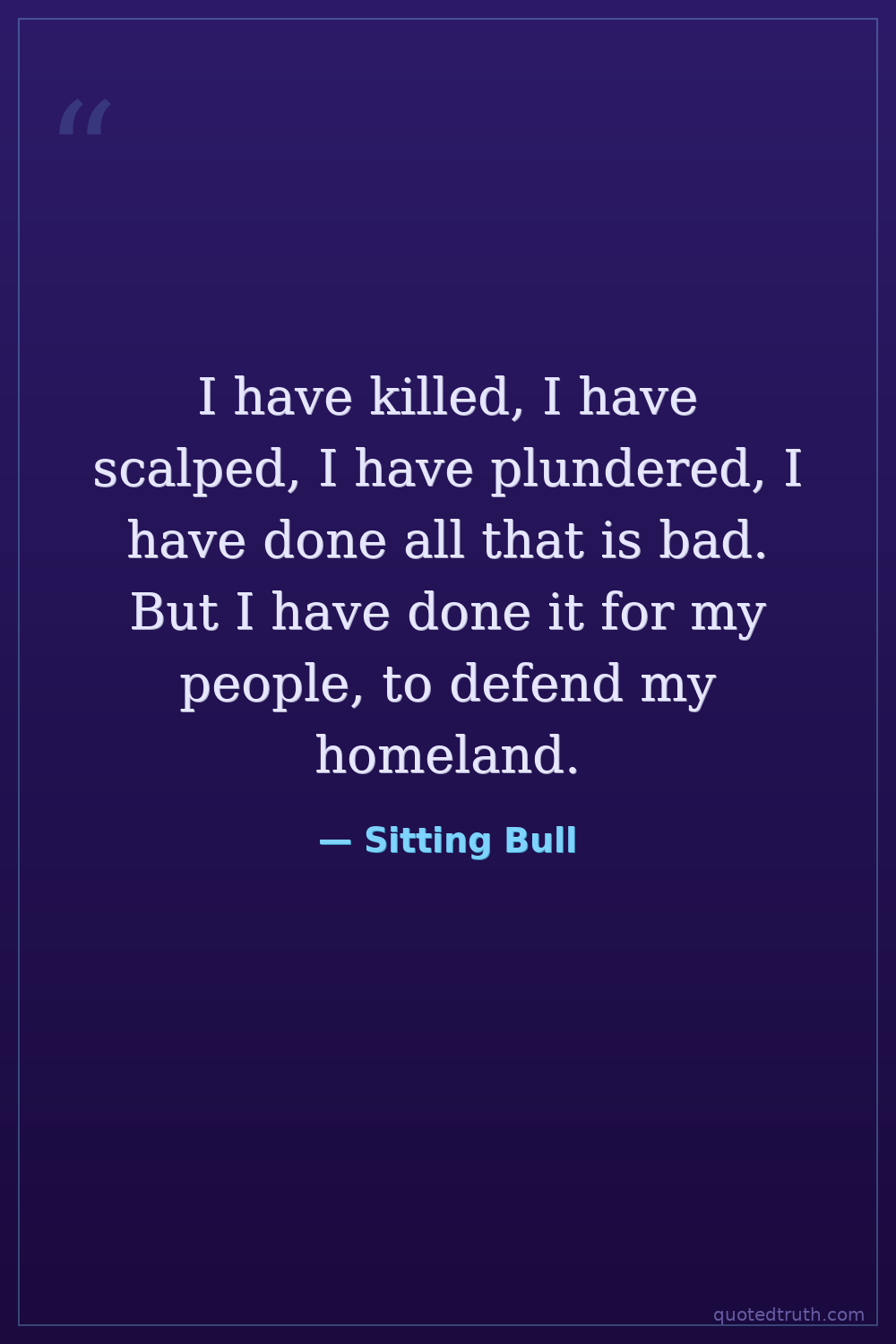 I have killed, I have scalped, I have plundered, I have done all that is bad. But I have done it for my people, to defend my homeland.