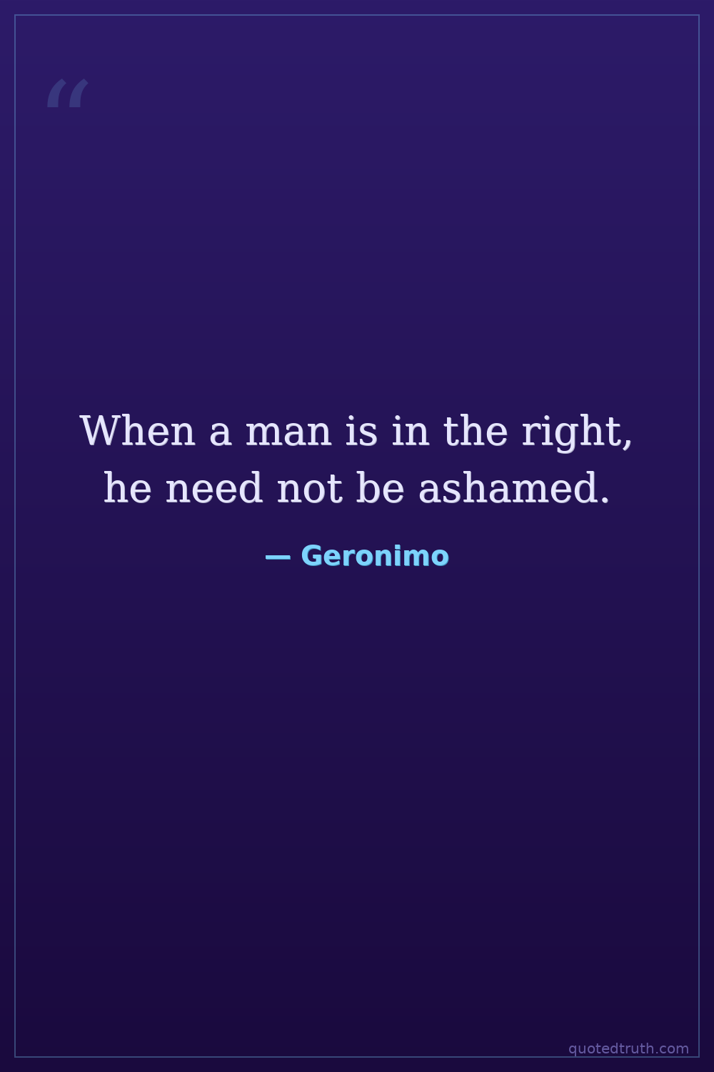 When a man is in the right, he need not be ashamed.