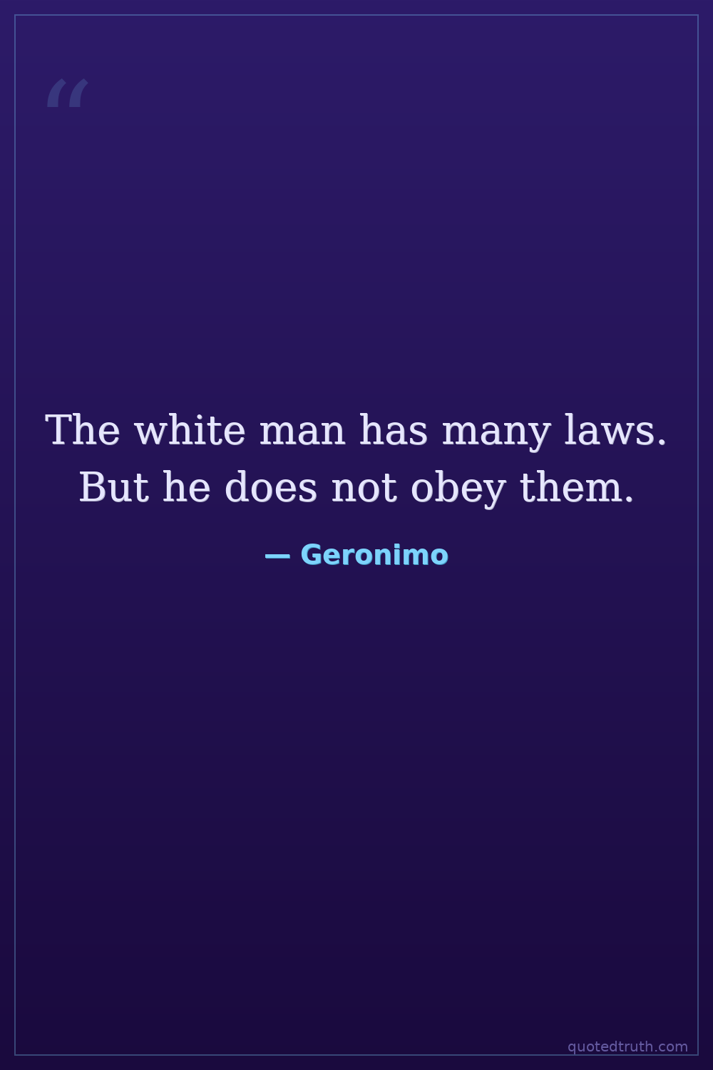 The white man has many laws. But he does not obey them.