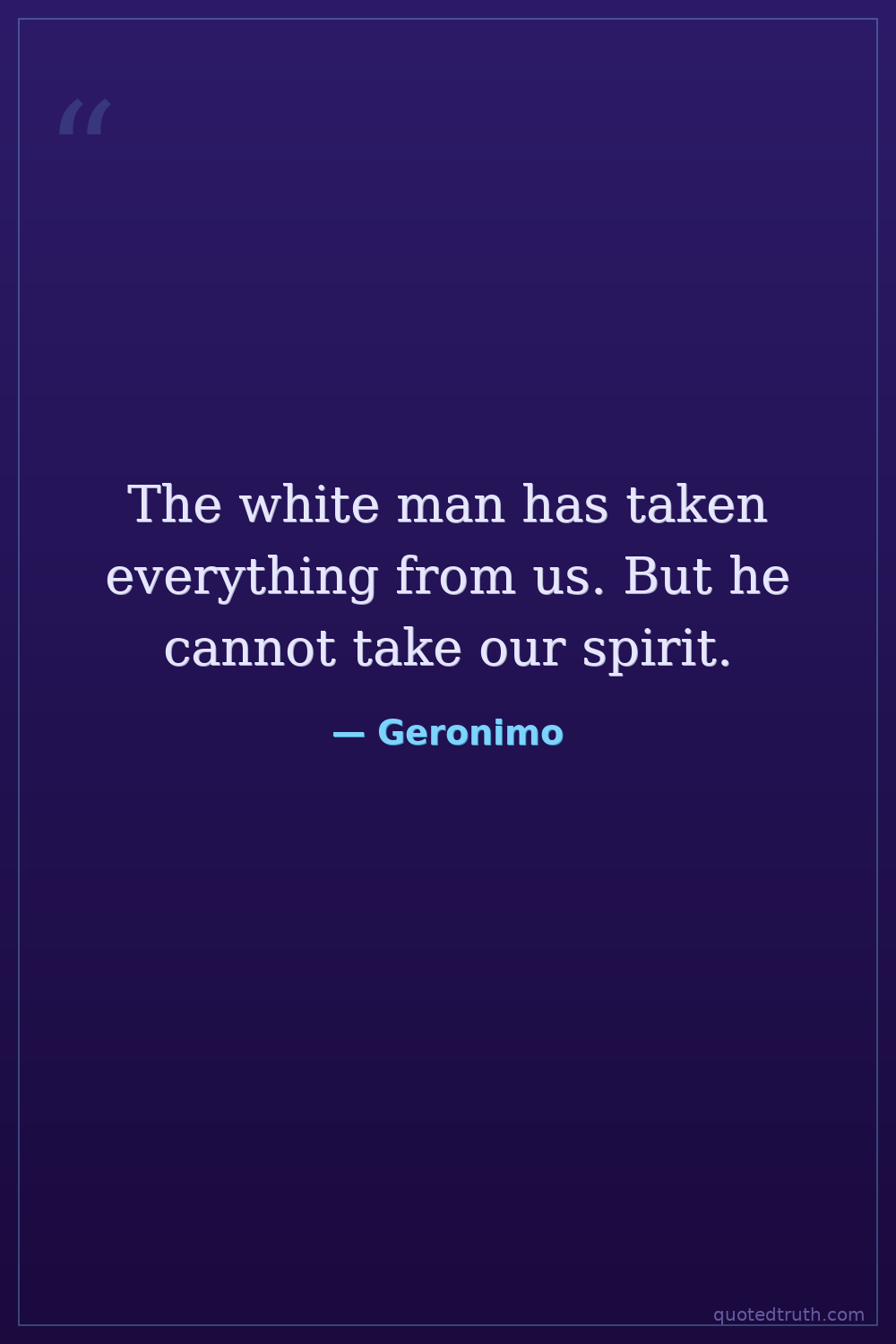 The white man has taken everything from us. But he cannot take our spirit.