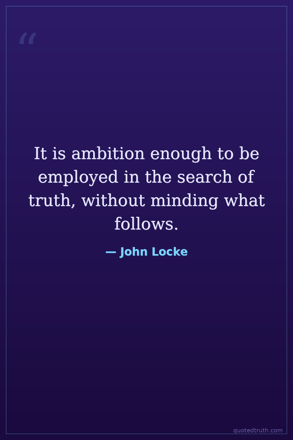 It is ambition enough to be employed in the search of truth, without minding what follows.