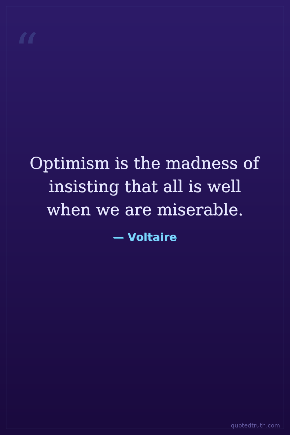 Optimism is the madness of insisting that all is well when we are miserable.
