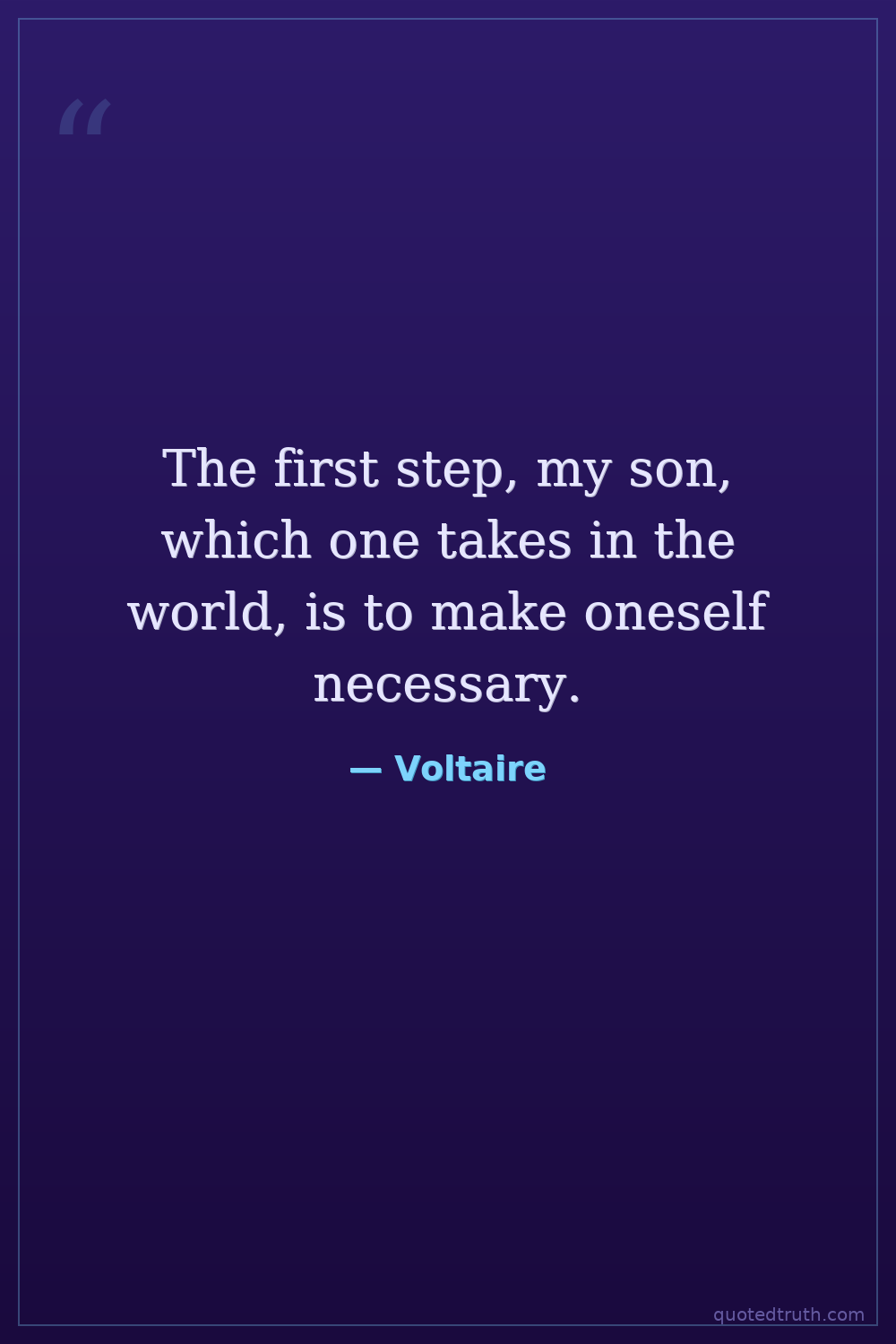 The first step, my son, which one takes in the world, is to make oneself necessary.
