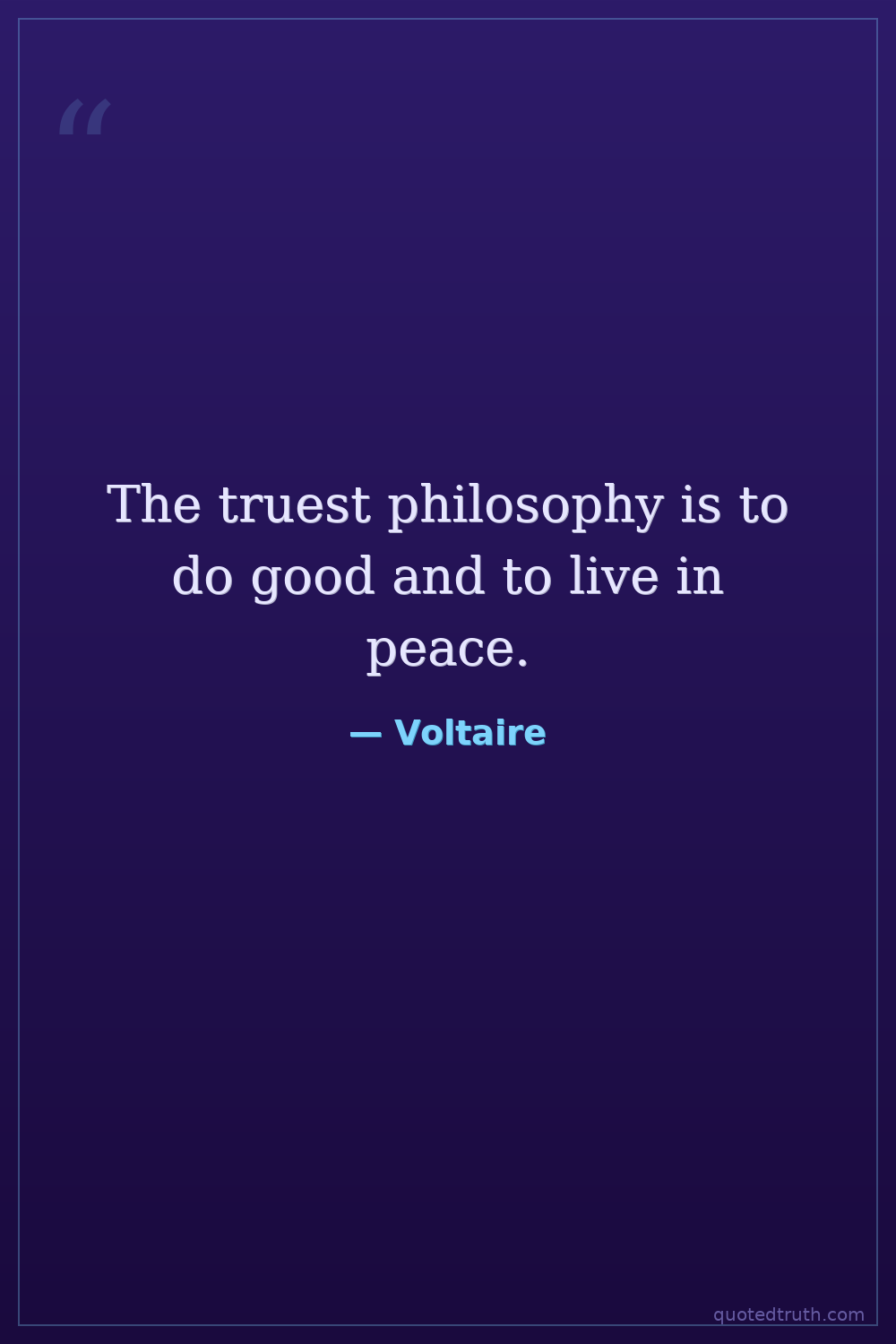 The truest philosophy is to do good and to live in peace.