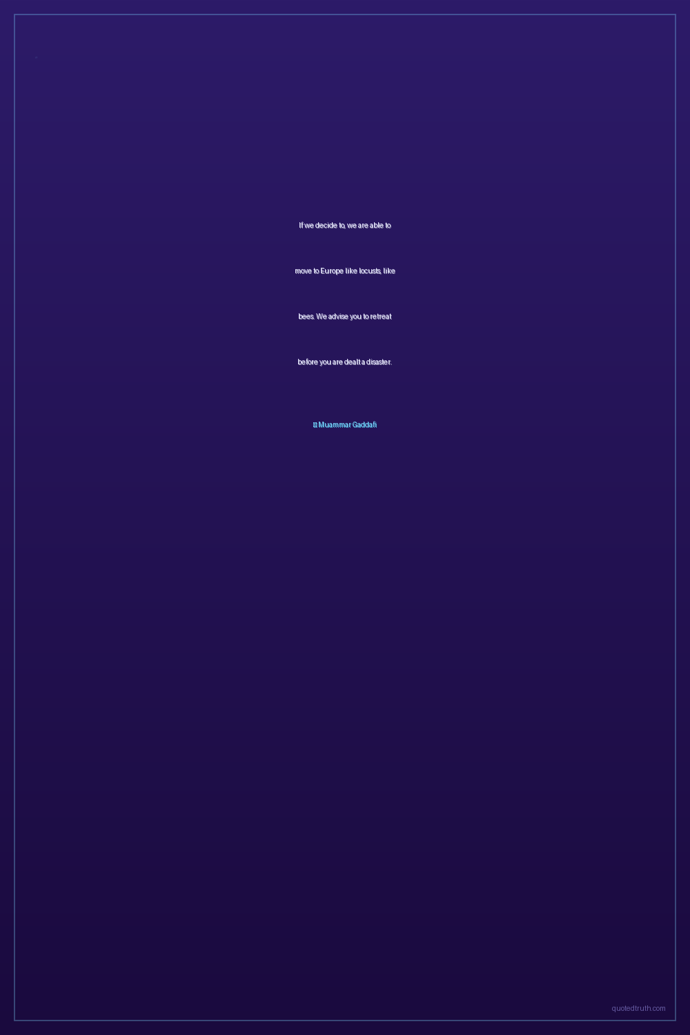 If we decide to, we are able to move to Europe like locusts, like bees. We advise you to retreat before you are dealt a disaster.