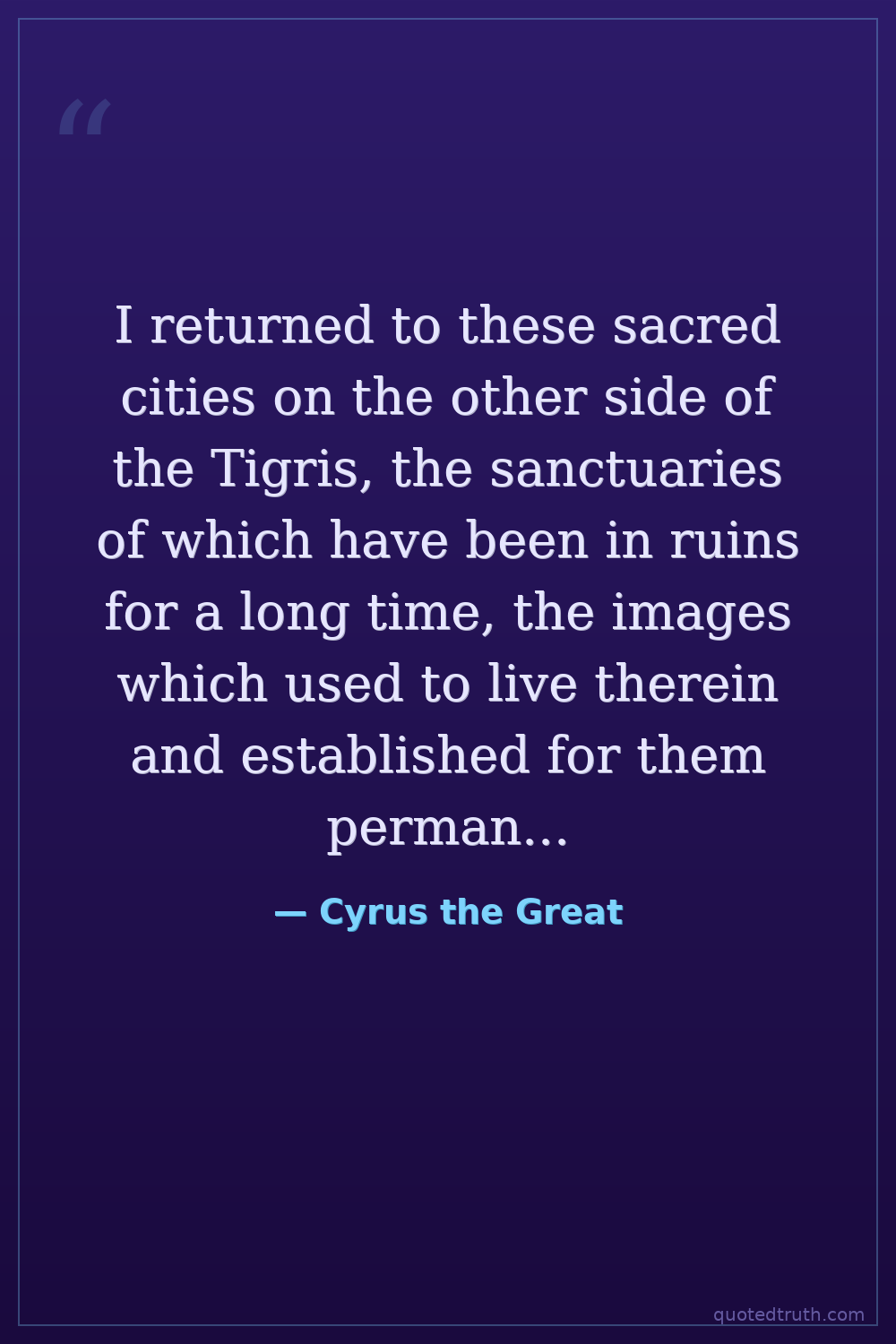 I returned to these sacred cities on the other side of the Tigris, the sanctuaries of which have been in ruins for a long time, the images which used to live therein and established for them permanent sanctuaries.