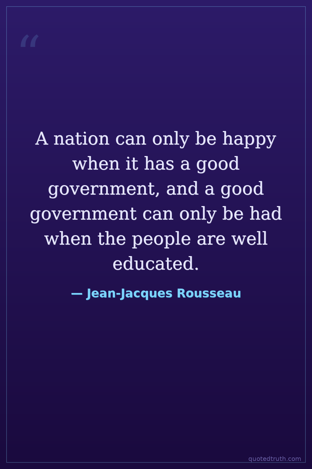 A nation can only be happy when it has a good government, and a good government can only be had when the people are well educated.