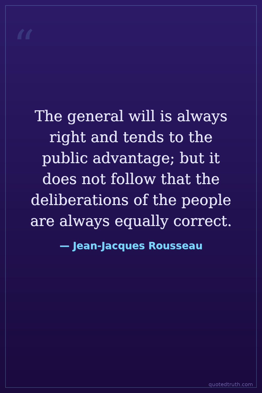 The general will is always right and tends to the public advantage; but it does not follow that the deliberations of the people are always equally correct.