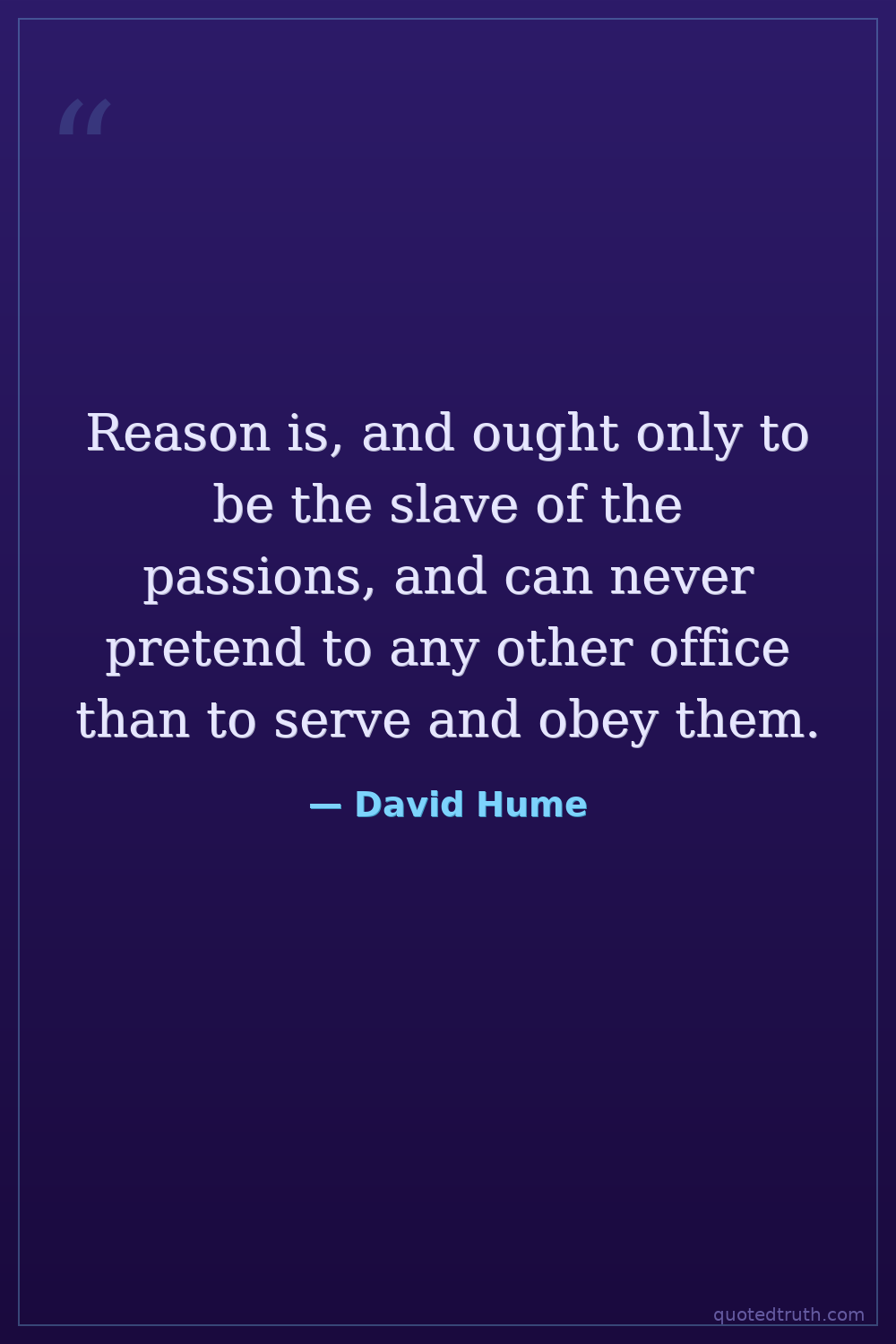 Reason is, and ought only to be the slave of the passions, and can never pretend to any other office than to serve and obey them.