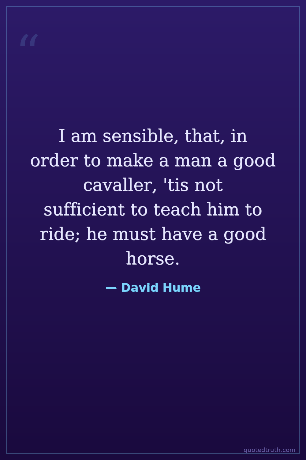 I am sensible, that, in order to make a man a good cavaller, 'tis not sufficient to teach him to ride; he must have a good horse.