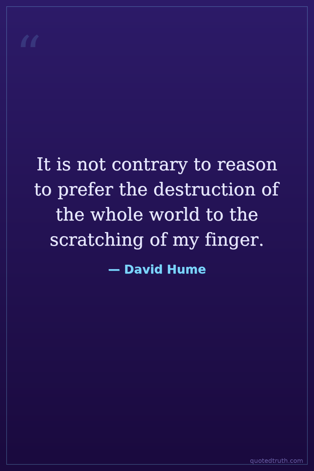 It is not contrary to reason to prefer the destruction of the whole world to the scratching of my finger.